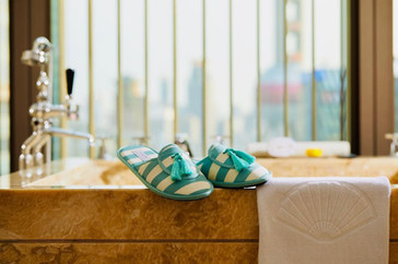 Sometimes, the most telling details are the ones guests don’t expect. A soft gesture at the edge of the bed. A striped slipper, quietly waiting.